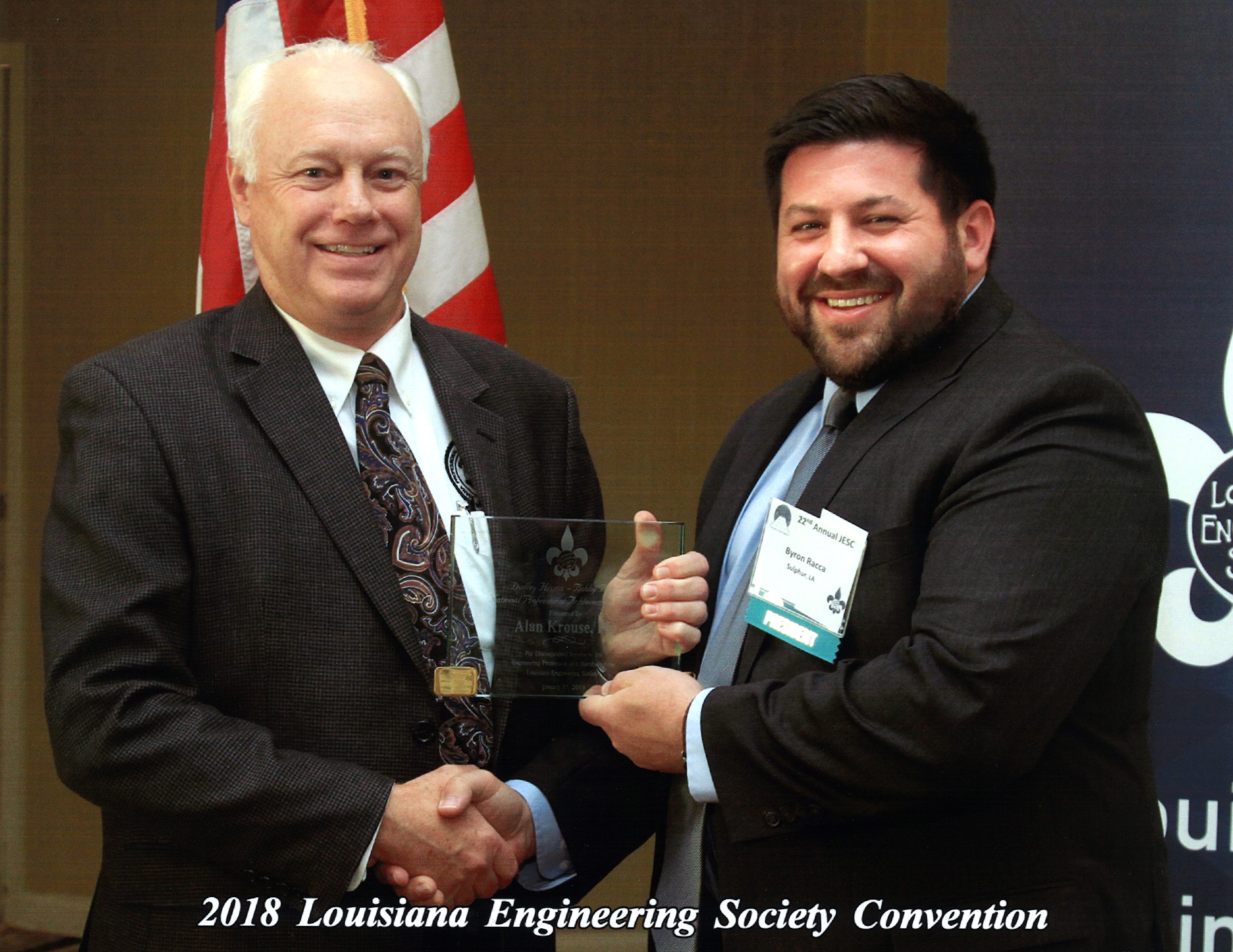 Alan D. Krouse, PE was honored with the Dudley Hixson-Bobby Price National Professional Achievement Award from the Louisiana Engineering Society.