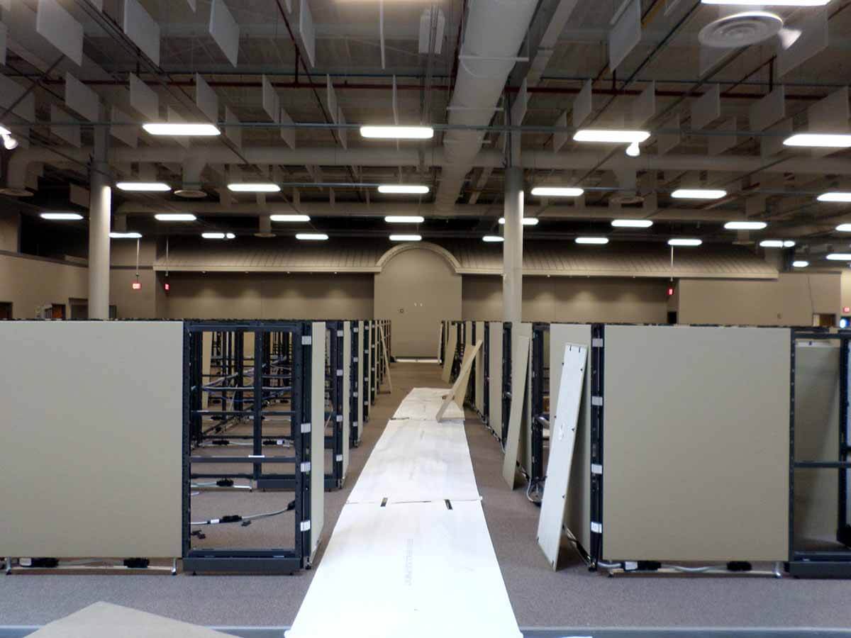 Buchart Horn provided programming, construction document, and limited construction administration services to reconfigure approximately 100,000 SF of Building 2 in Bays 1, 2, and 3. The renovation/adaptive reuse project included interior alterations in two 200-foot by 200-foot bays for use as administrative “swing space” for mission personnel temporarily displaced by renovation projects undertaken in other areas of the Depot. The third bay incorporated a food service/dining facility and classrooms. A separate furniture, fixtures, and equipment (FFE) solicitation was prepared to furnish the reconfigured area.