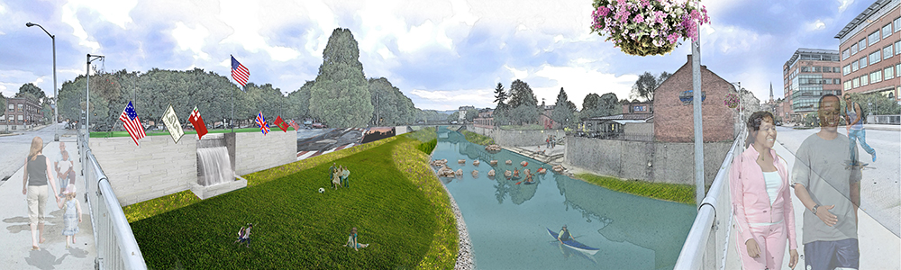 Codorus Creek runs through the City of York approximately 7.5 miles upstream of its confluence with the Susquehanna River. The 279-square-mile watershed has been continuously occupied since colonial days. Historic development of the downtown area included severe encroachment on the floodplain, with building right up to the creek banks.