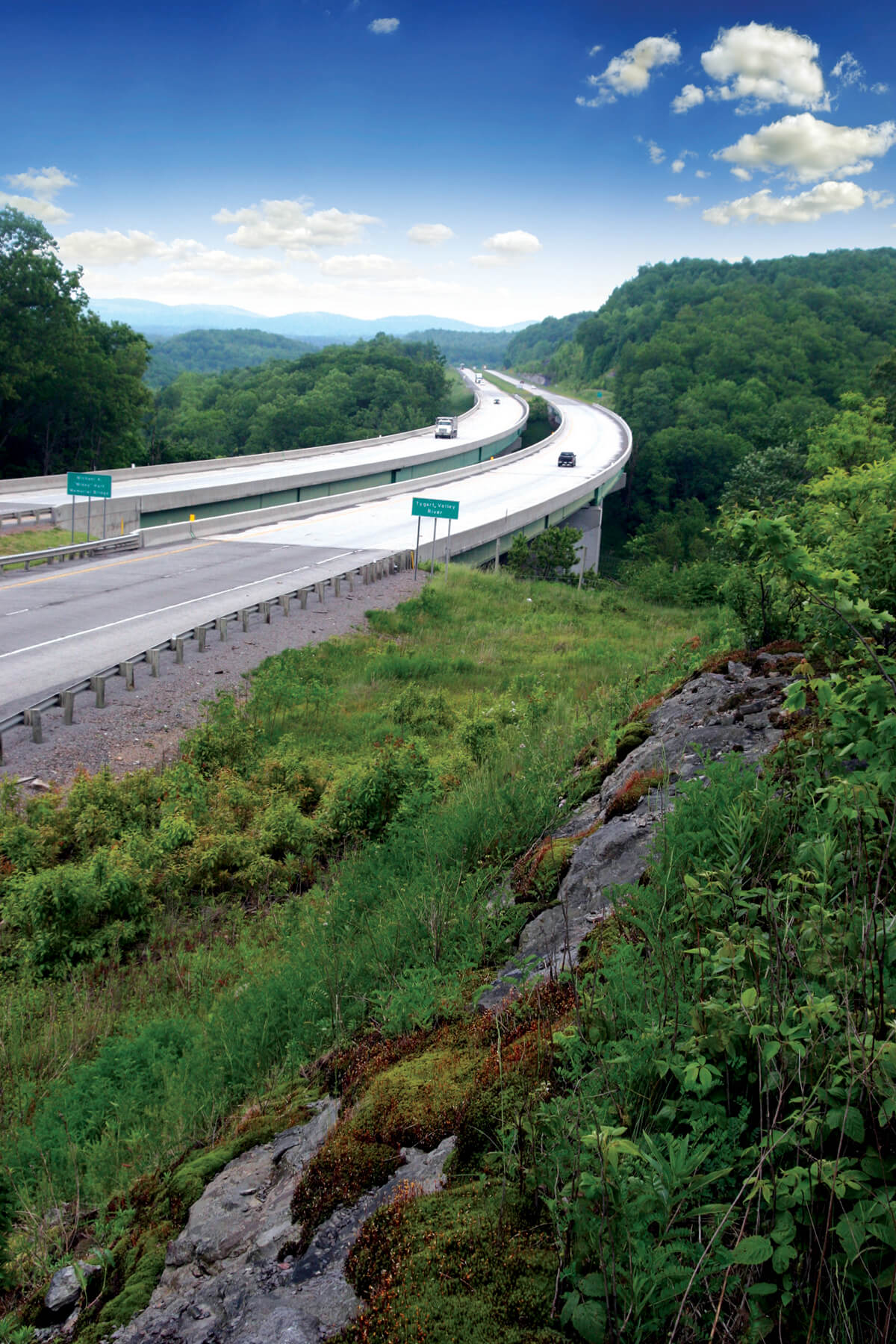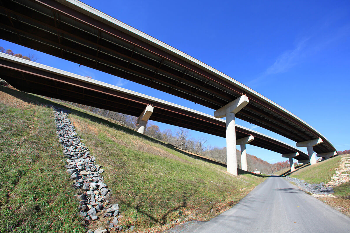 Buchart Horn provided preliminary and final design services for an approximately two-mile segment of Corridor H near Greenland Gap in Grant County, WV. The project also included two major bridges and one minor stream crossing.
