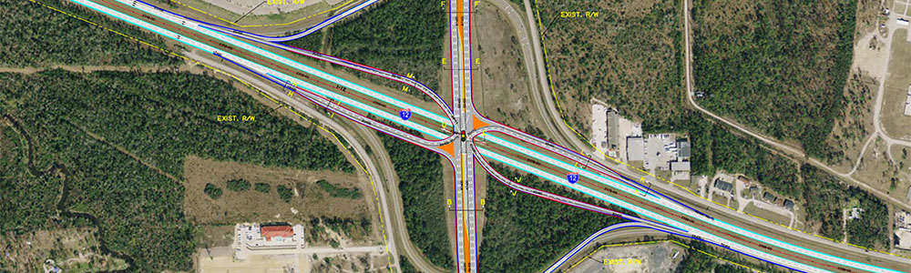 BH conducted a Stage 0 Study to evaluate the feasibility of reconstructing the existing interchange at I-12 and Airport Road from a traditional “diamond” interchange to a single point urban interchange (SPUI). As part of the study, data was collected verifying the existing traffic conditions and land use in way of the interchange. Projected traffic conditions for the existing diamond interchange were compared to the projected conditions of an SPUI. This information, along with an estimated project cost and impacts, was compiled to form a Stage 0 Planning and Feasibility Report.