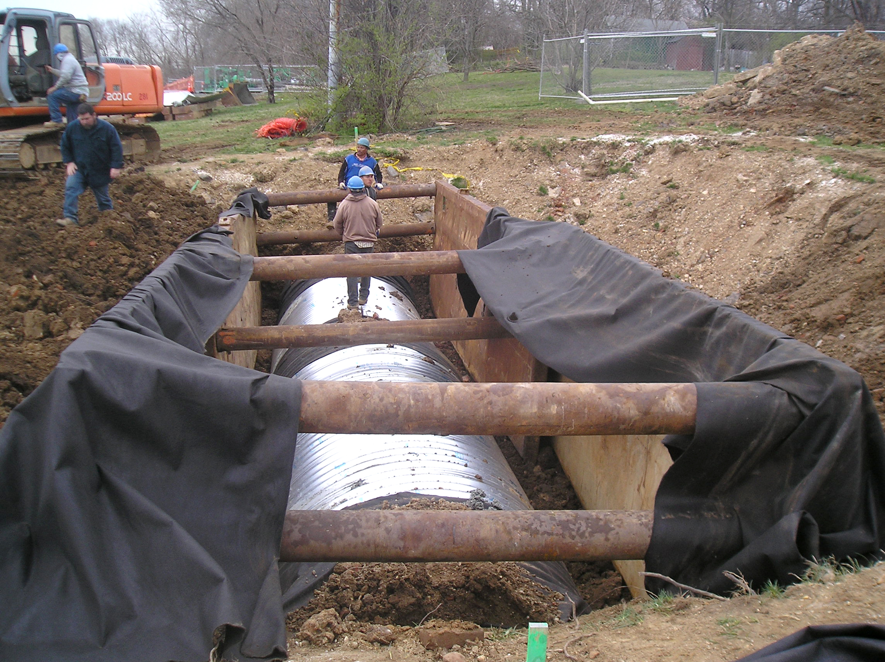 BH provided an initial engineering assessment of the broken pipe. The contractor’s plan to contain the site was reviewed and modified to ensure high flows were contained within the low-pressure interceptor. The emergency containment design used equipment and materials readily available to the contractor and WSSC sewer maintenance facility.