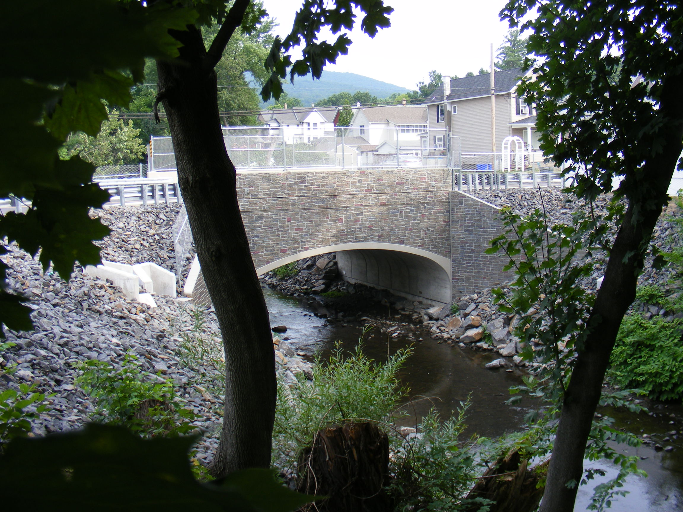The bridge carrying Rockwell Avenue over Leggett’s Creek was built in 1905 and consists of a stone masonry arch culvert. The structure has a span of 36 feet and the transverse width is just over 28 feet from curb to curb. Buchart Horn was involved in the inspection of the structure from 1998 to 2003. Our firm prepared final design plans, specifications, and a cost estimate for the replacement structure.
