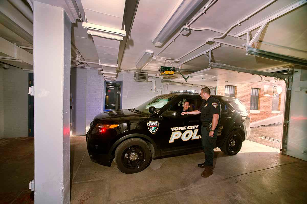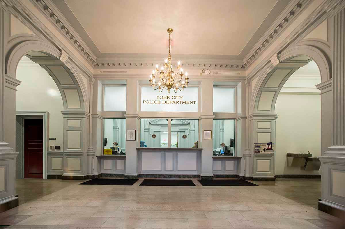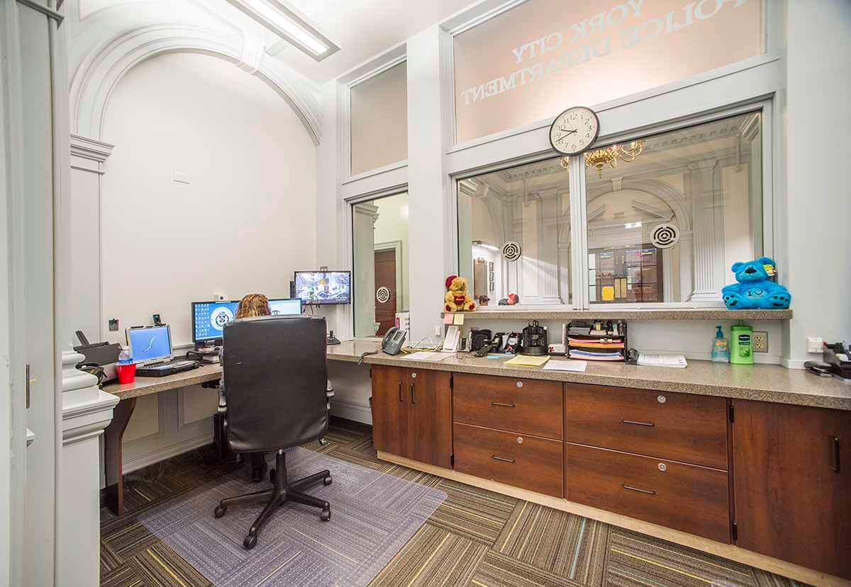 Construction was completed in four phases while the building remained occupied. Individual departments were moved several times to keep areas secure during construction. The seldom-used fourth floor is now used for training, fitness, and evidence storage due to the installation of a new elevator on the interior of the building as the local Historical Review Board would not permit major exterior modifications. New perimeter fencing and the placement of an emergency generator also required Board approval. York City residents visiting the newly renovated building have limited access to the main lobby which features impregnable transaction windows for Police and Records. An interview room and secure toilet room are the only other spaces accessible by the public.